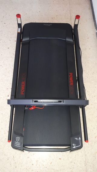 Cinta de correr Domyos Run500 – Estado nuevo Vendo cinta de correr Domyos Run500, comprada este mismo año y con muy poco uso. Está en estado impecable, prácticamente nueva. Ideal para entrenar en casa, tanto para caminar como para correr, con una experiencia cómoda, silenciosa y segura. Características destacadas: Velocidad ajustable hasta 16 km/h Inclinación automática hasta el 10% para mayor intensidad Pantalla LCD con varios programas: controla tiempo, velocidad, distancia, calorías, frecuencia cardíaca, etc. Superficie de carrera amplia con sistema de amortiguación Diseño plegable, fácil de guardar y con ruedas para mover.