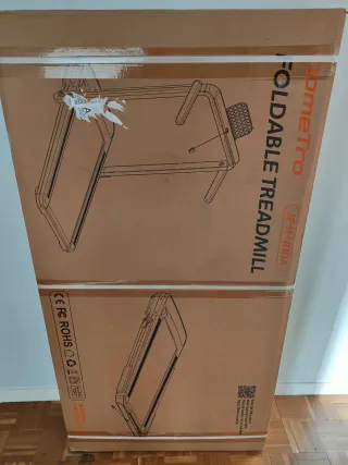 En su caja 📦, SIN abrir, totalmente nuevo. Precio nuevo 269.99€ Cinta de correr y andar HomeTro plegable. Modos de carrera y caminata bajo el escritorio, con velocidades de 0 a 14 km/h. También cuenta con 12 programas preestablecidos. Banda de cinco capas acolchada. Motor potente, estable y silencioso: La cinta está equipada con un motor de 3.0 caballos de potencia y soporta un peso máximo de 120 kgs. - Modelo: JF-H-40DA - Diseño plegable para fácil almacenamiento. - Mando control remoto. - 2 pantallas Led bici fitness cardio entrenar correr running gym pesas dieta calorías