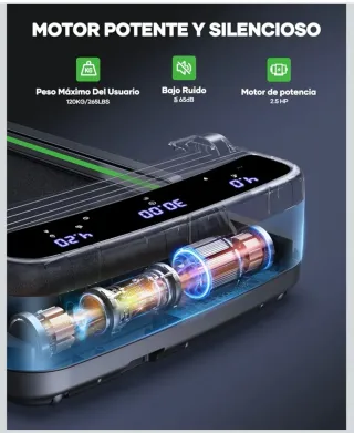 Cinta de andar y correr en buen estado. Ideal para mantenerte activo en casa. - Diseño moderno y compacto. - Pantalla digital con información del ejercicio. Motor silencioso premium. Pantalla incorporada que muestra las calorías quemadas, la distancia y la velocidad Rango de velocidad: 1,0-10 km / h Función de plegado Absorción de pisada mejorado. Área de la cinta para correr: 40 x 95 cm Entrega en mano.