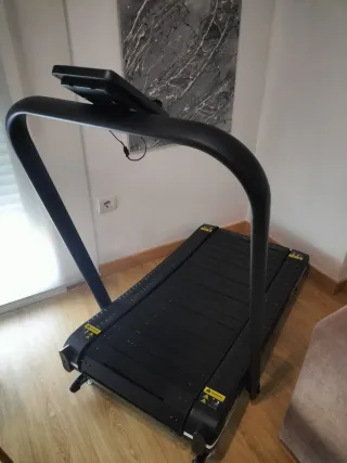 Cinta de correr de color negro, con un diseño moderno y funcional. Todavía en garantía, menos de 1 año desde su compra y muy poco uso (solo para andar en ella) - Superficie de carrera amplia. - Pasamanos curvos para mayor comodidad. - Pantalla integrada en el manillar.
