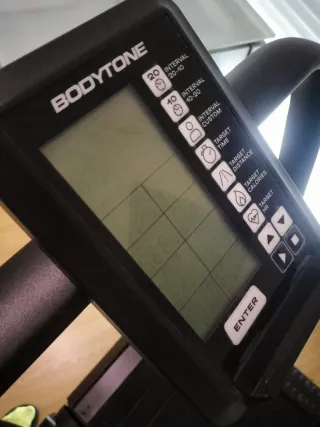 Cinta de correr Bodytone en perfectas condiciones, prácticamente sin uso. - Pantalla digital con información de tiempo, distancia y calorías. - Controles de velocidad e inclinación intuitivos. - Soporte para botellas. - Tiene tres meses y se ha usado literalmente 4 veces