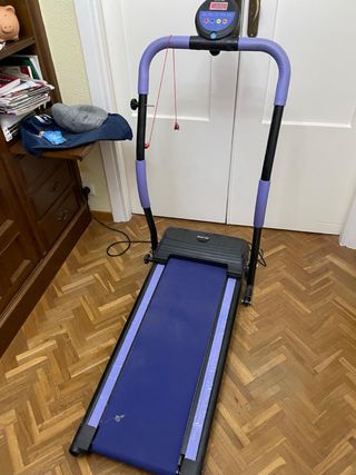 Cinta de correr Domyos RUN100 en muy buen estado. - Diseño plegable para fácil almacenamiento. - Pantalla digital para seguimiento de entrenamiento. - Empuñaduras ergonómicas para mayor comodidad.