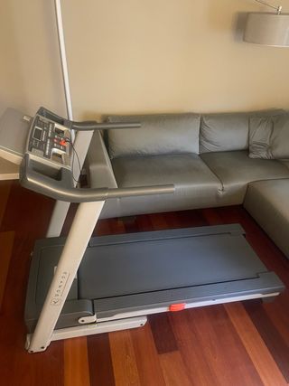 Usada muy esporadicamente. En perfecto estado de funcionamiento. Incluye manual original de montaje / usuario. -Velocidad: 0.8-16 km/h. -Inclinación: 0-10% -Soporte para libros/botellas/reproductores. -Programas disponibles: Manual, Intervalos, Pérdida de peso, Carrera, Personalizable... -Medición de frecuencia cardíaca: Sensores de pulso en las empuñaduras y receptor Polar integrado. -Peso máximo del usuario: 137 kg. -Dimensiones: 182 x 90 x 145 cm (largo x ancho x alto). -Dimensiones plegada: 80 x 90 x 174 cm.