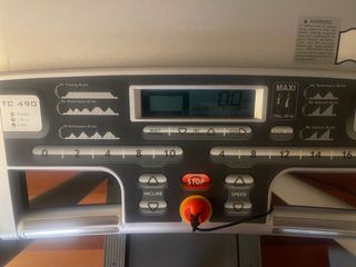 Cinta de correr Domyos TC 490 con diseño plegable para facilitar su almacenamiento. Ideal para entrenamientos en casa. Estado como nuevo, poco uso, impecable. Velocidad máxima 16 km/h, inclinación motorizada a 10%. 6 programas que varian velocidad e inclinación. Plegado con sistema de seguridad, fácil de desplazar gracias a las ruedas - Marca: Domyos - Modelo: TC 490 - Plegable