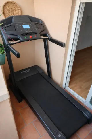 Cinta de correr Domyos T540c en buen estado. - Superficie de carrera de 50cm x 143cm. - Peso máximo de usuario: 130 kg. - Velocidad máxima de 18 km/h. - Inclinación de hasta el 10%. - 32 sesiones con objetivo y ajustables.