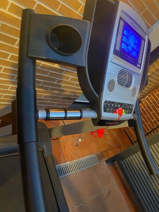 Cinta de correr Nordictrack c80i en buen estado. Superficie de carrera es de 51 cm x 140 cm. Motor de con una potencia continua de 2,5 CV, llegando a alcanzar picos de potencia de 3,75 CV. Velocidad máxima es de 18 km/h. Nivel de inclinación es de 10% La consola tiene una pantalla de LCD que es capaz de mostrar toda la información de su entrenamiento. Ésta es: - Velocidad a la que corres. - Tiempo de entrenamiento. - Distancia recorrida. - Calorías consumidas. - Nivel cardíaco. La consola tiene un total de 20 entrenamientos preestablecidos Medición del nivel cardíaco en los sensores del manillar