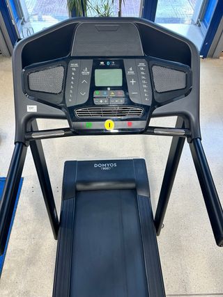 REF: 61946 Cinta de correr Domyos T900D. - Velocidad hasta 18 km/h. - Inclinable hasta el 10%. - 32 sesiones con objetivo y ajustables. - Ventilador. Superficie de carrera 50cm x 143cm y peso maximo 130kg. Artículo en muy buen estado. Realizamos envíos combinados. 1 AÑO DE GARANTÍA Somos Acerto Segunda mano, tienda de compra-venta y empeños, situada en C/ Santiago de Compostela 20, Roquetas de Mar, Almería. Hacemos envíos en península, Baleares y la mayor parte de Europa. Los artículos reflejados en este anuncio tienen el IVA incluido y está acogido al régimen especial de bienes usados.