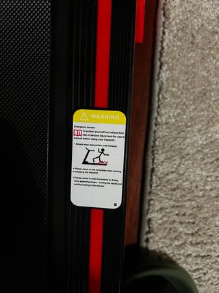 Cinta de correr compacta y moderna, ideal para entrenar en casa. Su diseño combina un acabado negro mate con elegantes líneas rojas a los lados. - 0-10kmh - 8% de inclinación con los topes rojos - Superficie de carrera negra. - Detalles laterales en color rojo. - Mando a distancia incluido. - Pequeña para guardar en cualquier sitio, debajo del sofá o donde sea Se entrega con el manual de instrucciones, el mando y el cargador, además de la caja original. Está totalmente nueva sin ningún uso.