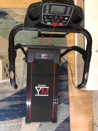 Cinta de correr de la marca YM, modelo Your Move. Ideal para entrenamientos en casa. - Diseño plegable para fácil almacenamiento. - Pantalla digital con información del ejercicio. - Portavasos integrados.