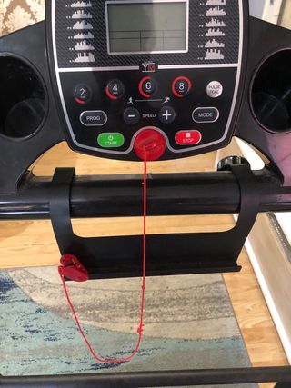Cinta de correr y andar en color rojo, con un diseño moderno y compacto. - Superficie de carrera negra. - Pantalla digital integrada. - Pasamanos ergonómicos. Comorado hace 6 meses . Muy poco usado . Precio nueva en amazon 260€