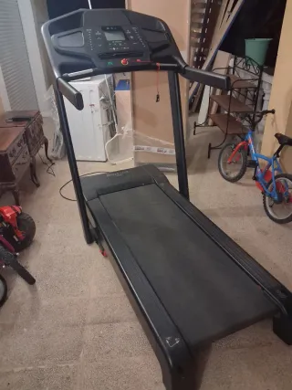 Está nueva y funciona fenomenal. Se ha usado solo un par de veces. Conserva incluso el plástico de la pantalla. La vendemos a mitad del precio que costó. Es plegable y cabe en cualquier rincón, debajo de la cama, incluso en el canapé. Muy estable y con buen espacio para correr. - Diseño moderno y funcional. - Superficie de carrera amplia. - Estructura robusta y estable.