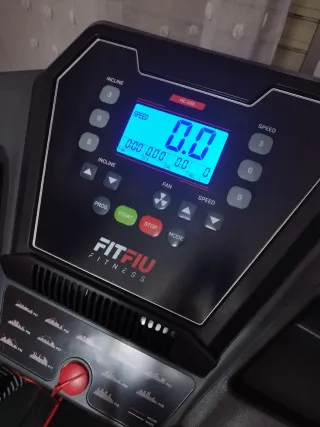 Cinta de andar y correr FITFIU en buen estado. Ideal para mantenerte activo en casa. - Diseño plegable para fácil almacenamiento. - Superficie de carrera negra con detalles rojos. - Consola con pantalla para seguimiento de actividad. Apenas se ha usado 4 veces, se compró pero nunca la usamos. Aún en algunas zonas tiene los plásticos de protección que traen para que no se arañe. Podríamos ver el transporte de la misma si es cerca de la zona de Toledo