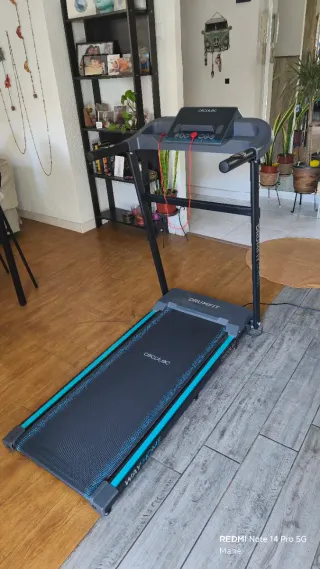 Se puede probar y recoger personalmente en Valencia. Cinta de correr Domyos RUN 100, ideal para entrenar en casa. Es plegable para facilitar su almacenamiento. - Pantalla digital con información de tiempo, distancia y calorías. - Programas de entrenamiento preestablecidos. - Velocidad ajustable hasta 14 km/h.