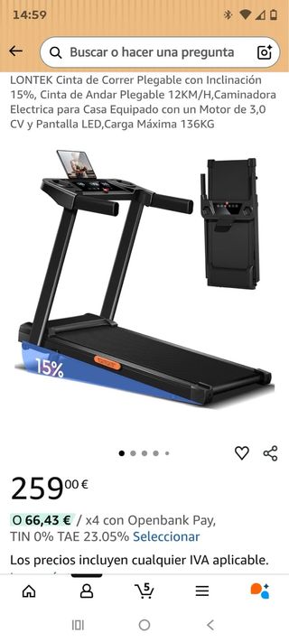 • De media, comprar Cinta de correr en Wallapop es un 44% más barato que comprar este tipo de producto nuevo