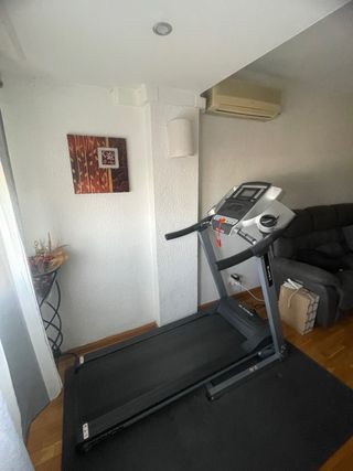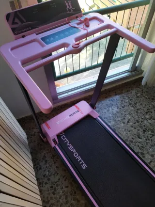 Cinta de correr en perfecto estado, ideal para entrenar en casa. Su diseño es moderno y funcional. - Pantalla digital con información de entrenamiento. - Rueda de ajuste de velocidad. - Altavoz integrado. Solo se a usado 1 semana. Costo 500€. Se vende por cambio de domicilio. Donde vamos hay un gym al lado.
