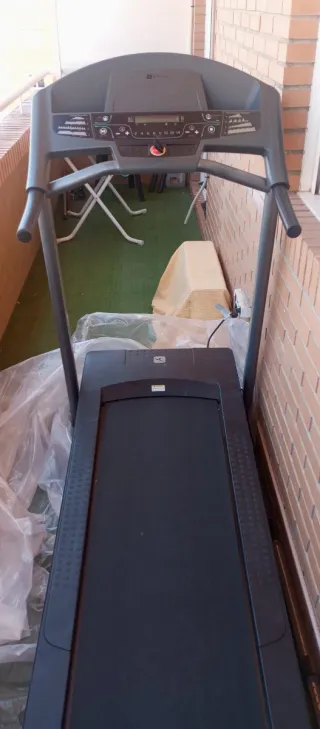 Vendo cinta de correr Treo Fitness T101. Perfecta para mantenerte activo sin ocupar mucho espacio gracias a su sistema de plegado. - Mecánica Impecable: El motor y la banda de carrera funcionan perfectamente. - Plegable: Se pliega en segundos y tiene ruedas para moverla por casa. - Incluye la pinza de seguridad original. ⚠️ La máquina funciona de maravilla para correr/caminar, pero el display (la pantalla) tiene algunos segmentos que fallan un poco. 🤝 Trato en mano en Zaragoza. ¡Solo recogida! ❗️No cambios, abstenerse ofertas absurdas 😊Cualquier duda, consúltame