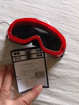 Gafas Cébé niño d 5 a 10 años para esquí y deportes de nieve con montura roja y lentes oscuras. Incluyen correa ajustable. - Montura de color rojo. - Lentes de color negro. - Correa de sujeción.