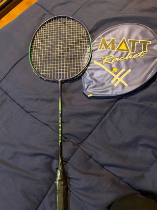 Raqueta de bádminton MATT Racket con funda. - Raqueta de bádminton. - Funda protectora incluida. - Diseño en color azul y amarillo.