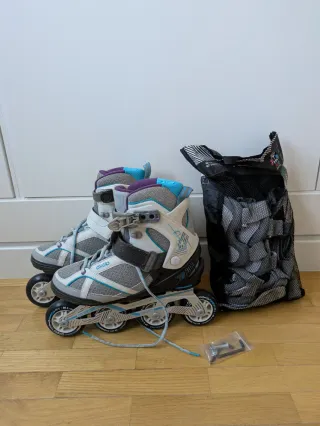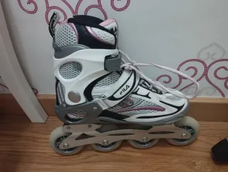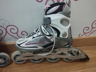 Patines en línea para mujer de la marca Fila. Diseñados para ofrecer comodidad y estilo. - Parte superior de malla transpirable. - Cierre de velcro y cordones. - Ruedas resistentes para un deslizamiento suave. -interior acolchado para mayor comodidad