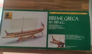 Maqueta de madera de alta calidad de una bireme griega del año 480 a.C. Reconstrucción basada en la Victoria de Samotracia. - Escala 1:35. - Longitud total: 56 cm. - Incluye 44 remos. - Piezas de madera cortadas a láser y detalles metálicos. Nueva, la caja muestra algunos signos de desgaste debido a almacenamiento. Las fotos forman parte de la descripción. Lo que se compra es lo que ve.