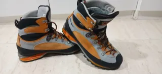 Botas de alpinismo de la marca Scarpa talla 42 (27cm), diseñadas para media y alta montaña. Usadas en la zona centro para corredores y caminatas en zonas rocosas. Son de cuero y cuentan con membrana Gore tex. Se pueden usar con crampones de correas o semiautomáticos como el de la foto (no incluidos). Son muy cómodas y agarran muy bien con su suela Vibram. Han sido usadas, pero tienen mucha vida por delante. Pensada para tres estaciones, quizás son muy calurosas para verano. Envío o entrega en mano en Manzanares (Ciudad Real) o Collado Villalba (Madrid) La sportiva. Boreal. Asolo. Millet. Salewa. Mammut.