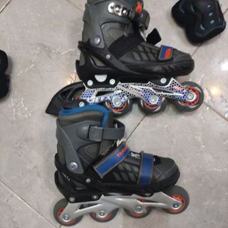 Patines en linea desde la talla 33 a la 35, están usados pero están bastante bien, incluye rodilleras, coderas y protección para las manos.