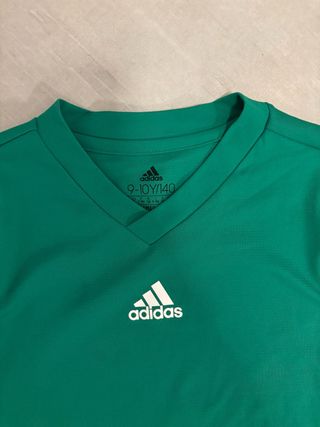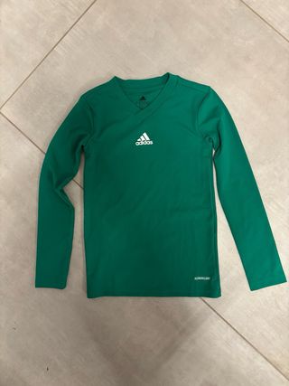 Camiseta técnica de manga larga Adidas en color verde. Tengo 2 iguales, una por 6€ las dos por 10€ - Talla 9-10 años / 140 cm. - Logo de Adidas en blanco en el pecho. - Cuello redondo