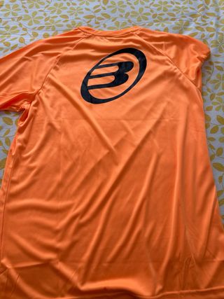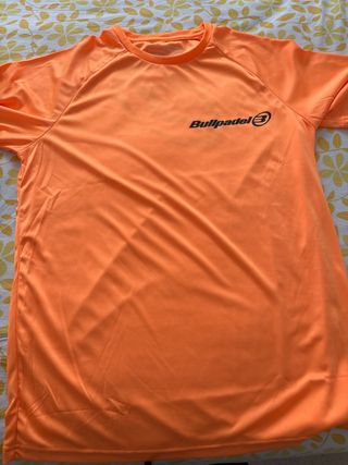 Camiseta de manga corta Bullpadel en color naranja. Ideal para la práctica de pádel o cualquier deporte. - Logo de Bullpadel en el pecho. - Tejido técnico transpirable. - Talla S Nueva sin usar, se cortaron las etiquetas pensando que la iba a usar pero no me la puse nunca.
