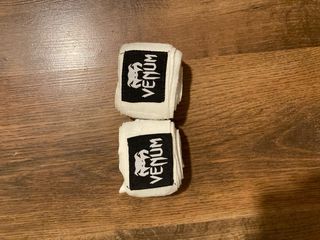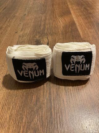 Par de vendas de boxeo de la marca Venum. - Color blanco. - Cierre de velcro. - 2 metros aproximadamente