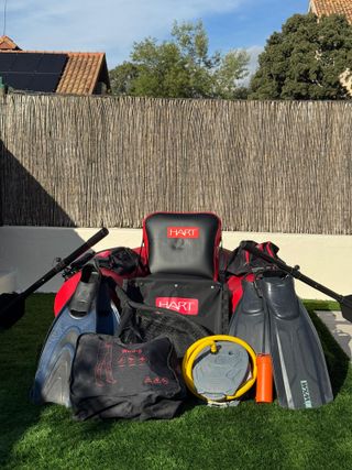 Vendo todo el kit completo de pesca con pato Hart The Vendetta Pro, usado únicamente 4 veces. Está prácticamente nuevo, sin pinchazos, sin roces y siempre bien guardado. Incluye todo lo necesario: - Pato Hart The Vendetta Pro - Soporte Hart para 6 cañas - Bolsa de transporte original - Remos originales - Sillón inflable original - Hinchador - Kit de reparación de pinchazos original - Vadeador Caperlan 500 PVC 3 capas (talla 42/43) - Aletas verano - Aletas invierno para vedeador - Red/sacadera flotante con cable retráctil Se venden por separado tambien***