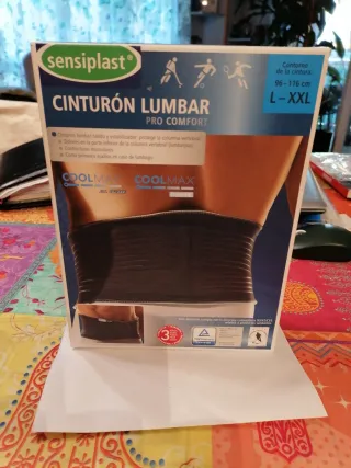 Cinturón lumbar Sensiplast Pro Comfort, sin estrenar. - Talla L-XXL (contorno de cintura 96-116 cm). - Color negro. - Material COOLMAX.
