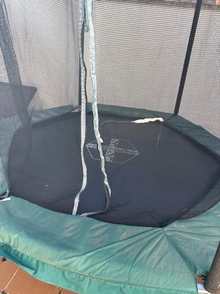Colchoneta elástica para exteriores con red de seguridad. - Estructura metálica. - Red de protección. - Cojín protector verde. - 240 de diámetro