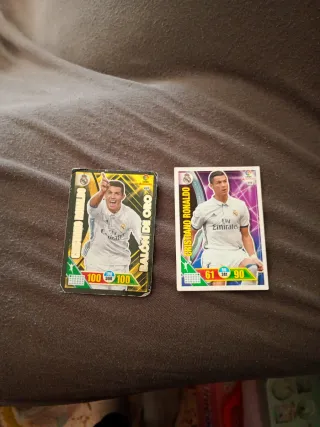 Dos cartas de Cristiano Ronaldo, una de ellas Balón de Oro. - Carta Balón de Oro con estadísticas 100, 100, 100. - Carta Cristiano Ronaldo con estadísticas 61, 241, 90.