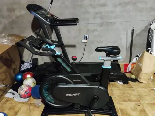 Bicicleta de spinning Cecotec Drumfit 7000. - Diseño moderno en color negro con detalles en azul. - Pantalla digital integrada. - Manillar ajustable. - Sillín ergonómico.
