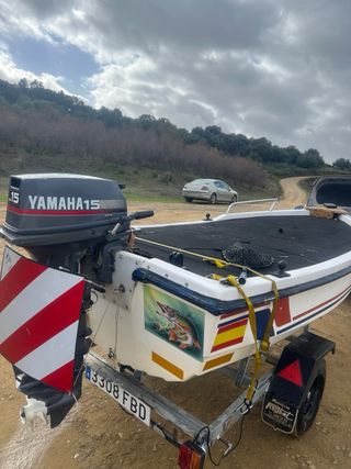Barca de pesca tipo Bass Boat, ideal para salidas, en muy buenas condiciones, muy comoda ideal para dos personas o para uso recreativo. Mejor ver en persona, con soportes echos para motor popero y motor a pedal. - Casco de 3,40 x 1,40 - Entarimada y bastante tabuchos. - Motor fueraborda 15 caballos con la revision recien echa coge 40kh con dos personas. - Matrículada y todos sus papeles tanto barca, motor y carro todo en regla. Precio 3000€ que no me lo cambia wallapop