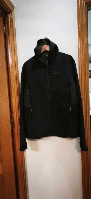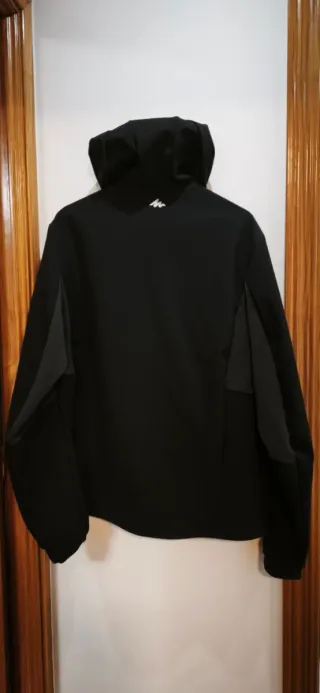 Chaqueta cortavientos polar de la marca Quechua. - Color negro. Talla XL hombre - Diseño con capucha. - Cremallera frontal. - Bolsillos con cremallera.