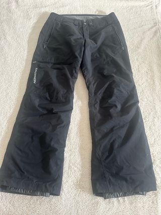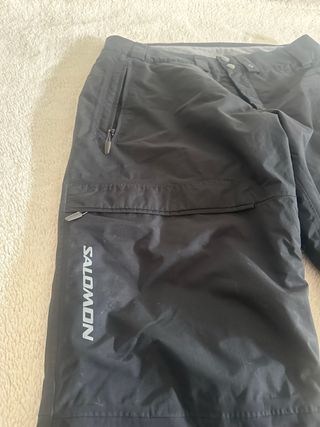 Pantalón de esquí SALOMON – Talla 46 – Negro Vendo pantalón de esquí Salomon original, en color negro, talla 46. Ideal para esquí o snowboard, cómodo y técnico. ✔️ Marca Salomon ✔️ Talla 46 ✔️ Color negro (combina con todo) ✔️ Impermeable y cortavientos ✔️ Transpirable y abrigado ✔️ Corte cómodo, permite total libertad de movimiento Pequeño desgaste en la parte que roza con el suelo pero puesto no se ve nada