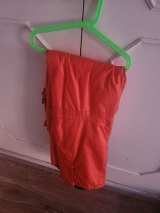 Pantalón de esquí cortavientos y repelente al agua, original, con cremallera en la parte inferior de la pernera para evitar que entre la nieve y velcro para ajustar la cintura. Dos bolsillos con cremallera. Un solo uso.