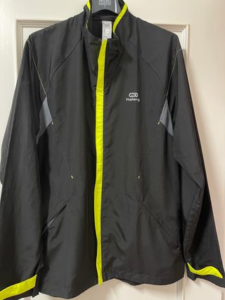 Cortavientos de la marca Kalenji en color negro con detalles en amarillo. - Cierre de cremallera frontal. - Cuello alto. - Puños y bajo elásticos. - Bolsillos laterales.