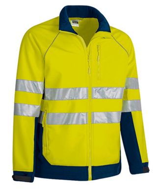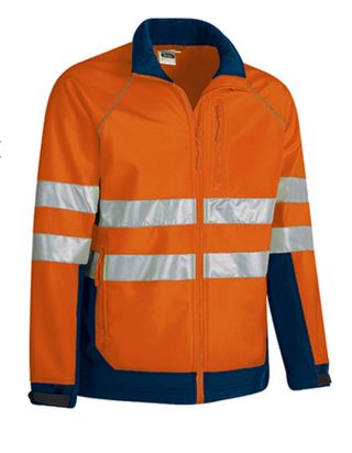 - Diseño con bandas reflectantes plateadas cosidas. - Cremallera frontal. - Bolsillos con cremallera. - Bandas reflectantes en delantero y espalda. El tejido es softshell (cortavientos). Está certificada como EPI categoría 2 en base a las normas 13688 y 20471. Los puños se ajustan con velcro. Es un EPI de ropa laboral. Pero también es ideal para actividades de ocio, caza, running, paseos… Colores disponibles: - Naranja flúor - azul marino. - Amarillo flúor - azul marino. - Amarillo flúor - gris. Tallas: S, M, L, XL, 2XL, 3XL.