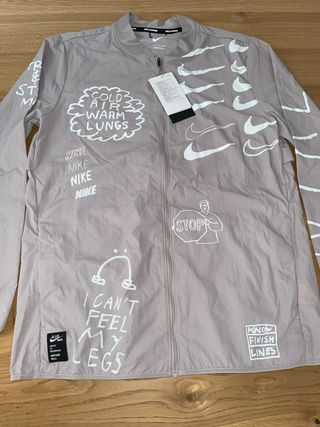Chaqueta cortavientos Nike original. - Color blanco y negro. - Logo de Nike en color rojizo