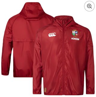 Chaqueta cortavientos de los British & Irish Lions. TALLA L. - Color rojo. - Diseño con capucha. - Logo de Canterbury. - Escudo de los British & Irish Lions con Since 1888 y HOADEN. Completamente nueva y con etiqueta. Perfecta para entrenar con lluvia ligera.