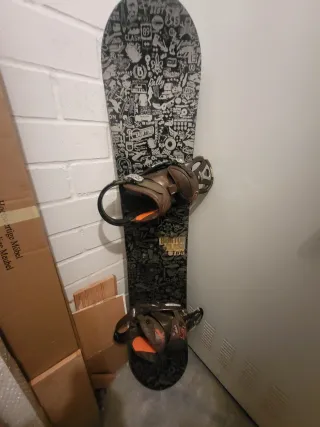 Tabla de snowboard Burton Clash con fijaciones Burton Mission. - Tabla Burton Clash. - Fijaciones Burton Mission. Talla 155 , tabla muy polivalente , usada pero en perfectas condiciones . Fijaciones talla L , solo lleva ese pequeño desperfecto que pongo en la foto.