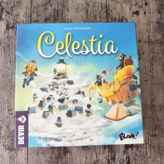 Juego de mesa Celestia, diseñado por Aaron Weissblum. Ideal para partidas divertidas. Ilustraciones coloridas y temáticas. Publicado por Devir y BLAM! Para 8 años