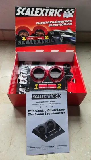 Se vende cuenta Kilómetros electrónico de scalextric con pantalla digital y botones de selección y modo, nuevo a estrenar, en su blister original y sin abrir. Mientras siga el anuncio, está a la venta. ¡Entra en mi perfil para ver otros articulos en oferta!.