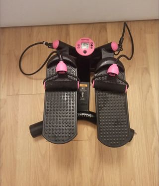 Para trabajar el cardio y tonificar todo el cuerpo (elásticos). Cuentakilómetros con 4 funciones: repeticiones, duración, frecuencia y calorías quemadas. Está como nuevo, sólo se ha usado una vez.