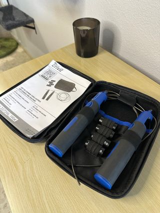 Set de comba Crivit con lastre para saltar. - Incluye dos asas. - Cuerda de saltar. - Manual de instrucciones - Estuche para guardarla. - Apenas usada