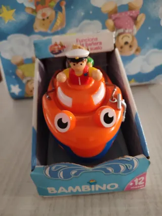 Divertido barquito de la marca Bambino, perfecto para la hora del baño. Su diseño colorido y alegre hará las delicias de los más pequeños. - Barco de juguete para el baño. - Incluye figura de marinero. - Edad recomendada: +12 meses.