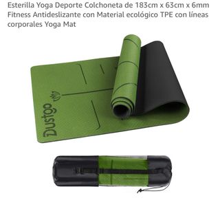 Esterilla de yoga y fitness de la marca Dustgo en color verde. Incluye bolsa de transporte. - Medidas: 183cm x 63cm x 6mm. - Material ecológico TPE. - Antideslizante con líneas corporales.