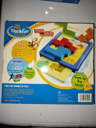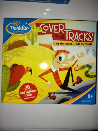 Juego de mesa Thinkfun Cover Your Tracks. - Incluye 20 cartas de desafío mental. - Nivel de dificultad: Principiante a Experto. - Para 1 jugador. - Edad recomendada: 8+.